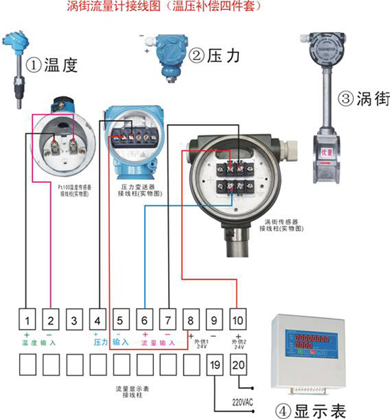 e)當在渦街流量傳感器同壓力傳感器和溫度傳感器組成測量系統(tǒng)時,其壓力、溫度測量點的位置如圖。