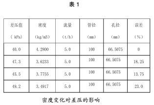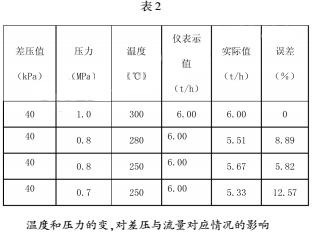 從表2中可以看出,在相同的差壓下,由于蒸汽的溫度和壓力的變化,即蒸汽密度的變化。相同的差壓所對應的流量是不同的。*大變化量可達到12.57%。