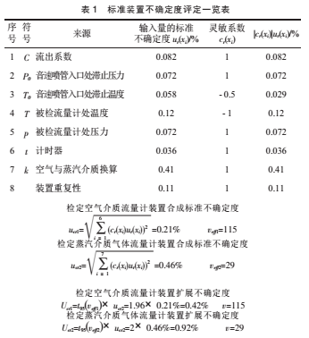 蒸汽流量計(jì)用氣體流量標(biāo)準(zhǔn)裝置不確定度評定