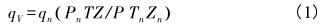 式中,qV、qn分別為工作狀態(tài)和標(biāo)準(zhǔn)狀態(tài)下的體積流量,m3/h;P、Pn分別為工作狀態(tài)和標(biāo)準(zhǔn)狀態(tài)下的絕對(duì)壓力,Pa;T、Tn分別為工作狀態(tài)和標(biāo)準(zhǔn)狀態(tài)下的熱力學(xué)溫度,K。