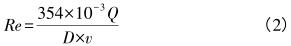 式中,Q為體積流量,m3/h;D為流量計(jì)內(nèi)徑,mm;v為運(yùn)動(dòng)粘度,m2/s。