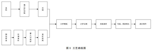 1.1 偏心爐+LF 爐雙聯(lián)冶煉工藝,鋼包冷調(diào)、熱裝飽和蒸汽流量計工藝路線圖簡介如圖 1。