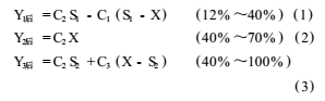 其中:Y1后、Y2后、Y3后分別為修正后*一段、*二段、*三段的流量指示值;X為隨機定量給出的實際流量值;S1、S2分別為段間流量的當(dāng)量值,即:未乘系數(shù)時的當(dāng)量流量。