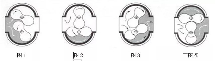 當(dāng)被測流體流經(jīng)流量計(jì)時(shí),流體的動壓力使進(jìn)出口間形成一個(gè)差壓而推動腰輪旋轉(zhuǎn)。當(dāng)流體推動一個(gè)腰輪順時(shí)針轉(zhuǎn)動時(shí)(如圖1)與之相連另一個(gè)腰輪逆時(shí)針轉(zhuǎn)動,轉(zhuǎn)動90°后成為(圖2)狀態(tài),腰輪受流體推動繼續(xù)轉(zhuǎn)動轉(zhuǎn)動時(shí)(圖2),與之相連的驅(qū)動齒輪帶動軸上的腰輪逆時(shí)針轉(zhuǎn)動,轉(zhuǎn)動135°后成為(圖3)狀態(tài),腰輪繼續(xù)轉(zhuǎn)動,腰輪旋轉(zhuǎn)360°時(shí)(圖4),有四倍于計(jì)量室有效有效容積的流體排除流量計(jì)。這樣,兩個(gè)腰輪交換驅(qū)動旋轉(zhuǎn),隨著腰輪的轉(zhuǎn)動,流體徑有計(jì)量室不斷排出流量計(jì)。腰輪每轉(zhuǎn)一圈排出的流體體積是一個(gè)固定值,即排出流量于腰輪軸轉(zhuǎn)速成正比,通過腰輪軸及其他傳動機(jī)構(gòu),將旋轉(zhuǎn)的次數(shù)減速后傳遞到計(jì)算顯示部分。正是燃?xì)饬髁坑?jì)的這種工作原理決定了這種流量計(jì)只要計(jì)量室內(nèi)部配合間隙設(shè)計(jì)、組裝合理,它就會有較高的精度和較低的起步流量,這一特性在民用正常用氣時(shí)的計(jì)量精度,有克服了其它類型流量計(jì)對居民用氣低峰時(shí)微小氣量的無能為力。